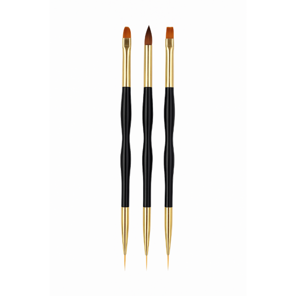 3’lü Siyah Nail Art Fırça Seti – Çift Taraflı Jel ve Nail Art Fırçası