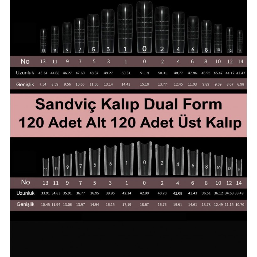 Protez tırnak uygulamalarında doğal ve klasik görünüm elde etmek isteyenler için Küt Sandviç Kalıp Dual Form Seti, vazgeçilmez bir üründür.