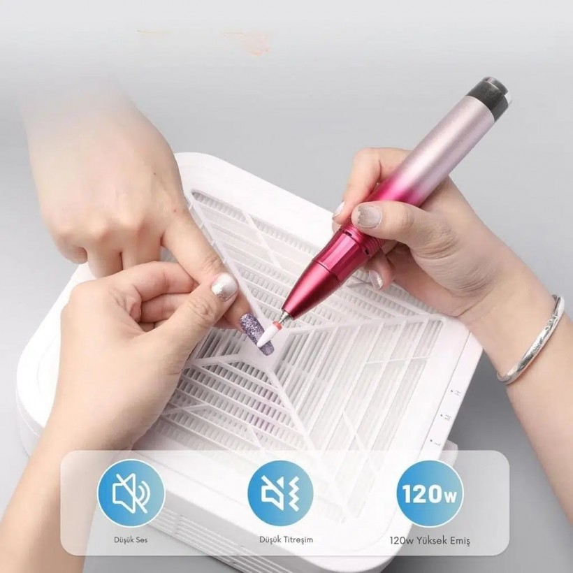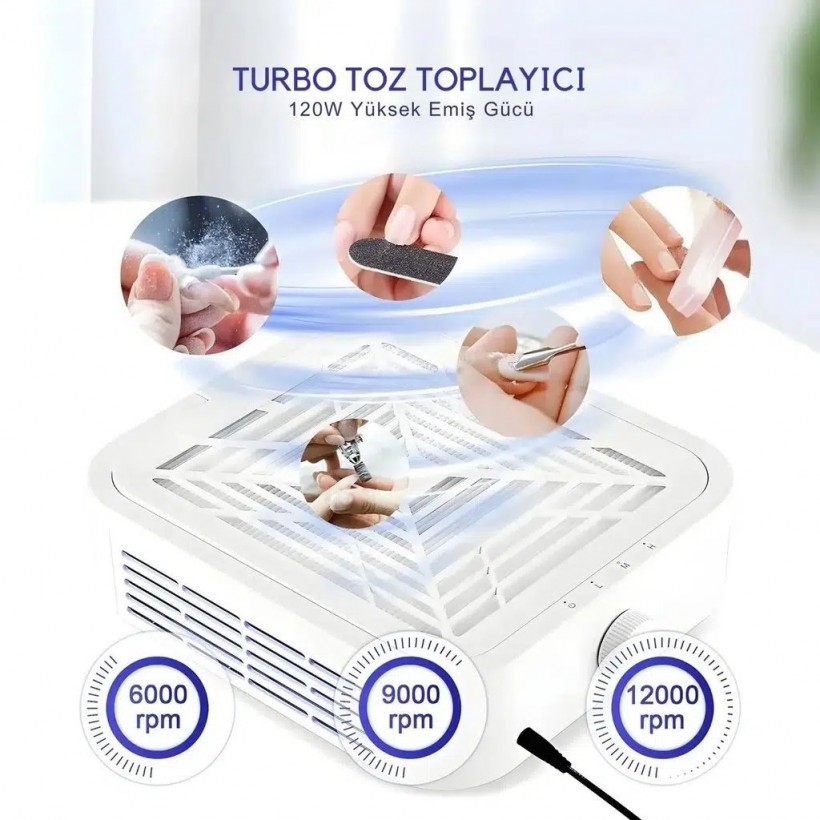 SNRQI WL‑007, salon tipi tırnak tozu toplayıcı arayan profesyoneller için tasarlanmıştır. 120 W'lık fırçasız turbo motoru sayesinde 12.000 dev/dk'ye kadar çıkan güçlü vakum sağlar. Törpüleme ve frez işlemlerinde oluşan tozu anında toplar ve masanın temiz kalmasına yardımcı olur.